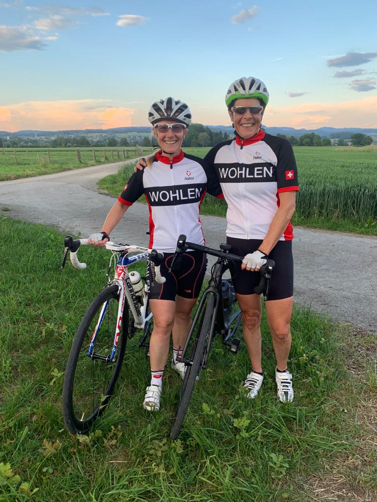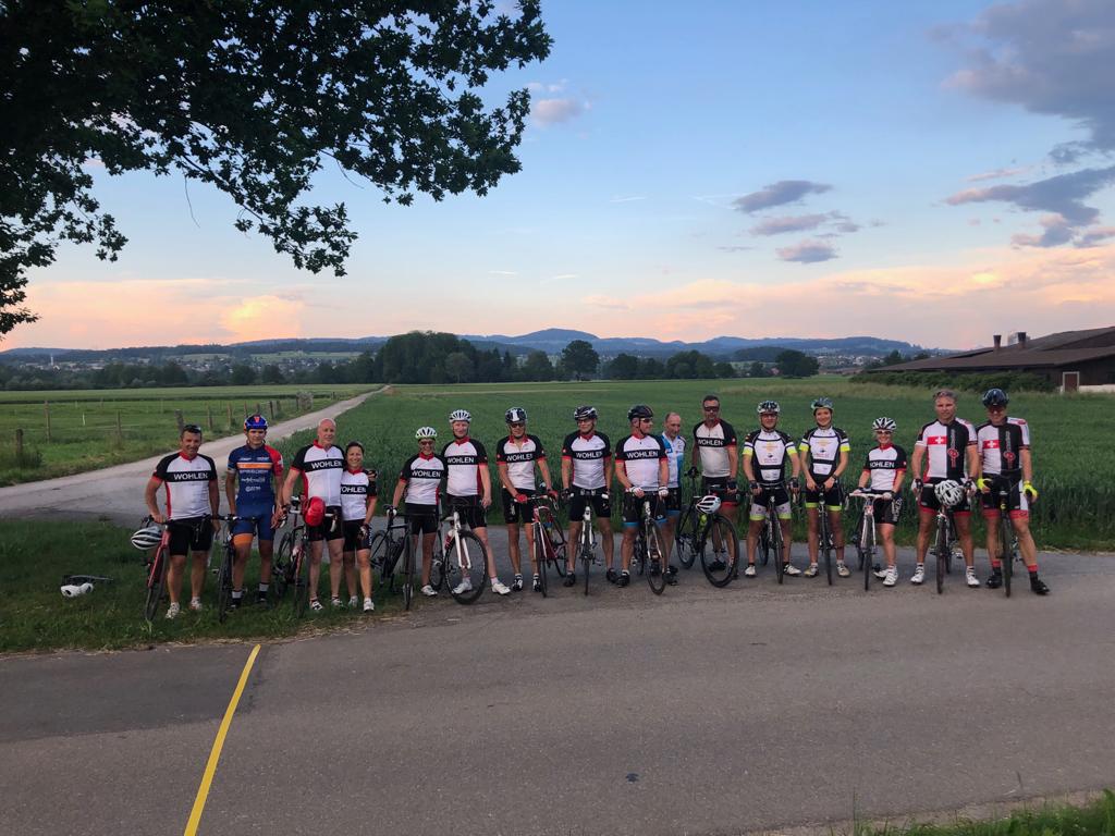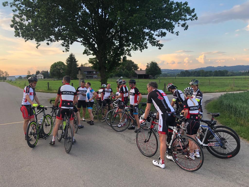 Ein paar Minuten verspätet, jedoch bei angenehmen Abend-Temperaturen starteten 14 Teilnehmer zu den 7 Runden à 3.8 km. Nicole feuerte uns eifrig an. Yulia absolvierte ein paar Einfahrrunden, gesellte sich aber später zu Nicole an den Wegrand und unterstützte und motivierte die Rennradler.