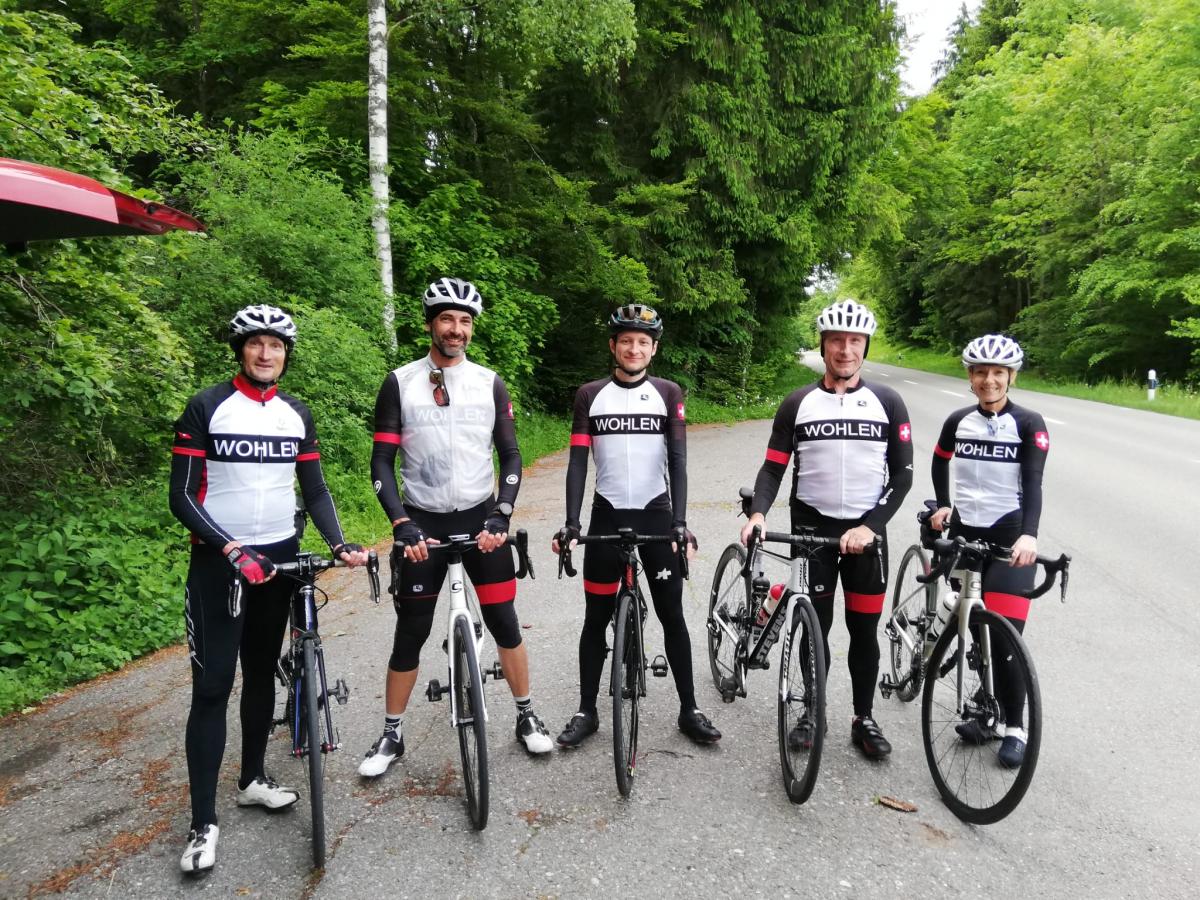 Das Gruppenfoto zählte leider nur 5 Personen im Vereinstrikot... am fehlenden VC-Outfit von Remo konnte es wohl nicht liegen, oder?? Es stellte sich heraus, dass Remo nach dem erbitterten Zweikampf mit Marcel von einem Muskelkrampf heimgesucht wurde und diesen mit einer Zusatzschlaufe auskuriert hatte.