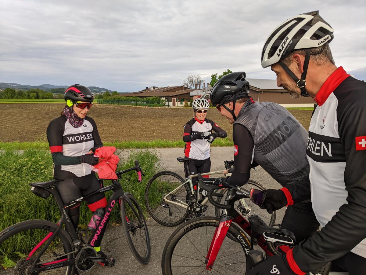 Es hätten 10 Runden à ca. 3.8 km zwischen Merenschwand und Birri gefahren werden sollen. Schlussendlich entschied Marcel das 5 Runden ausreichen. Dies hatte zwei Gründe. Hauptgrund Nr. 1, das Wetter, immerhin regnete es nicht, aber es war frisch. Die Sonne zeigte zwar... kurz... und nur am Schluss beim Fotoshooting von Sabrina und mir, dafür liess sie uns wortwörtlich strahlen ☀️. Der zweite Grund lag an der Beteiligung. Lediglich Roger, Marcel, Pascal, Sabrina und ich waren passioniert, ein paar Punkte zu erhaschen.
