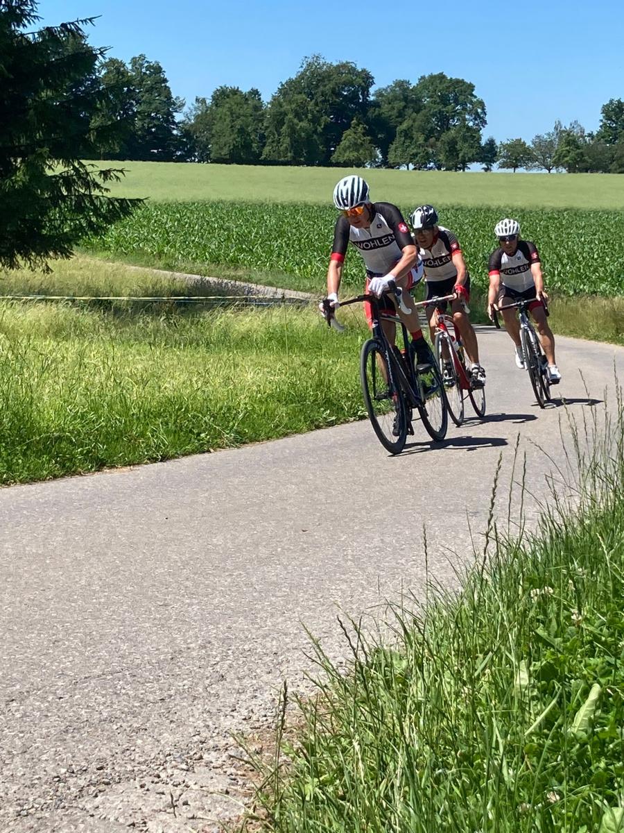 Bereits bei der Einfahrrunde fuhr ich als Letzte hinterher, konnte dafür mehr oder weniger den Überblick über die Fahrer behalten und so in meinem Bericht die Geschehnisse "wahrheitsgetreu" dokumentieren. Ich wusste früher oder später werde ich überrundet und dies passierte auf meiner 4. Runde. Unverzüglich versuchte ich mich der 3er Ausreissergruppe anzuschliessen, um wenigstens ein bisschen vom Windschatten zu profitieren. Für einen kurzen etwas abfallenden Streckenverlauf ist es mir gelungen, aber beim Abzweiger, wo die Strasse langsam wieder anstieg, musste ich kapitulieren.
