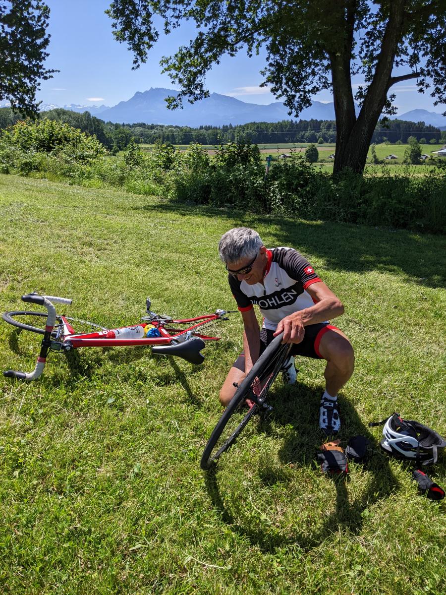 Ich war aber nicht die Einzige, für die das Rennen schon zu Ende war. Hanspeter war so super unterwegs und fing tatsächlich vor dem Aufstieg einen Platten ein. Meine Hilfe beim Wechseln wurde nicht benötigt, also nutzte ich die Zeit ein paar Fotos zu schiessen.