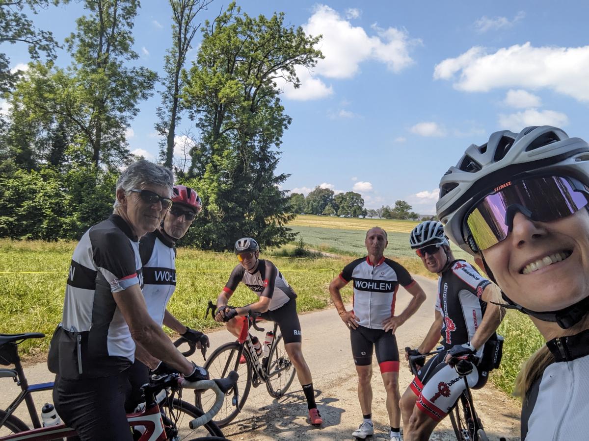 Ein kurzes Gruppenfoto lag noch drin. Pedro wollte rechtzeitig zum Start der 1. Etappe der Tour de Suisse in Einsiedeln sein, Dario hatte noch Sonntagspläne und wollte direkt nach Hause und wir gönnten uns zum Abschluss ein feines Glace, bevor wir uns auf den Nachhauseweg machten.