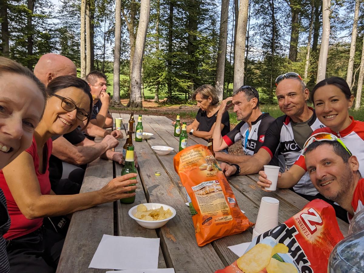 Nach der "Siegerehrung" fuhren ein paar noch eine kleine Ausfahrrunde. Nach und nach trafen auch die restlichen VC'ler ein. Nach einem kurzen Apéro und kühlem Panaché oder Bier, war die Glut perfekt und die feinen Würste konnten richtig schön auf dem Rost grillieren.