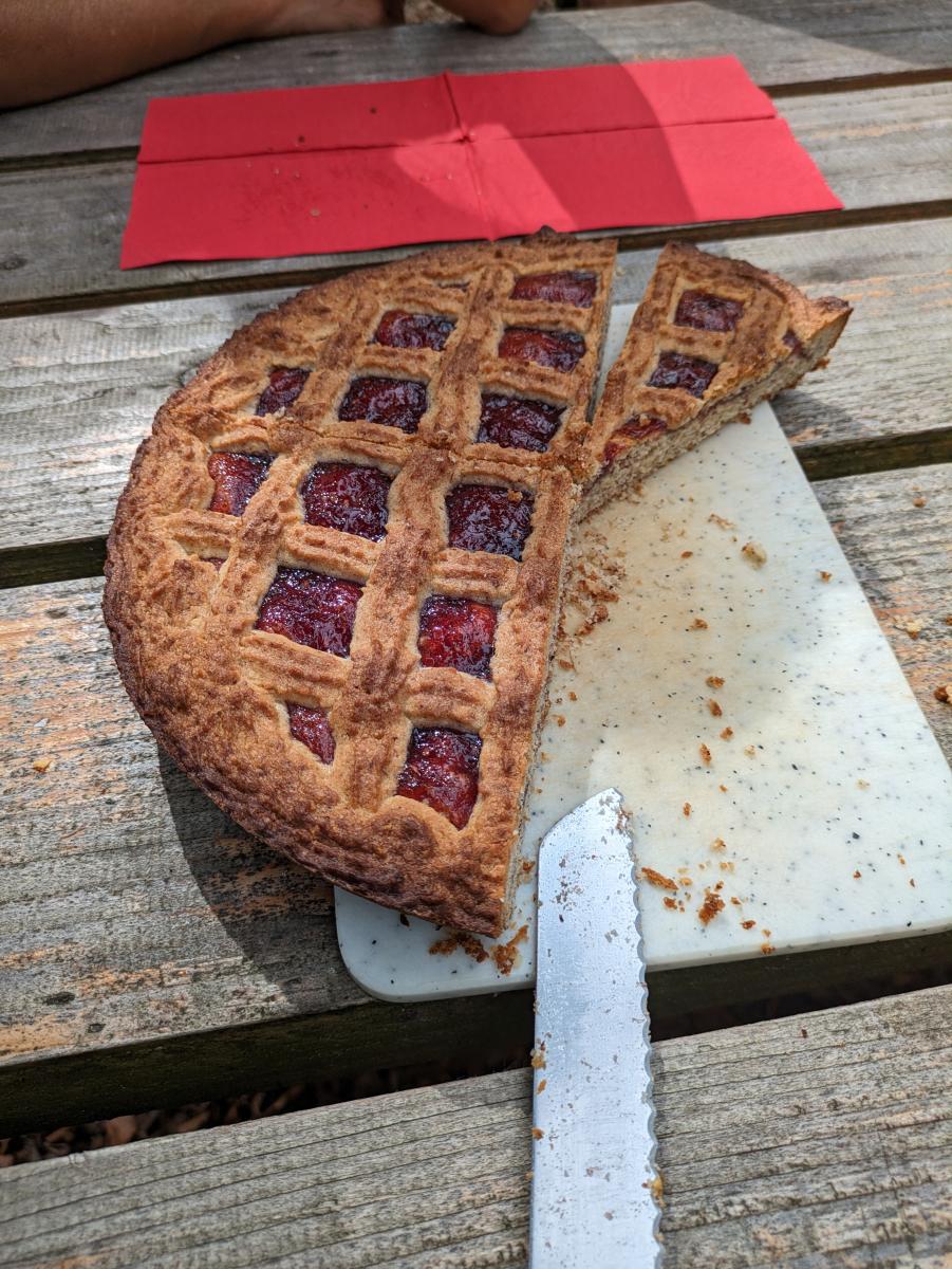 Wie jedes Jahr verköstigten wir uns mit den feinen mitgebrachten Salaten. Abwechslungsreich für jeden etwas dabei. Bis auf ein paar Stück Russenzopf, Linzertorte und Bünder Nusstorte (uiii, darf man das noch so schreiben 🤔... doch... wenn Betty Bossi das so schreibt, dann dürfen wir auch 😁), wurde praktisch alles rübis und stübis aufgegessen.