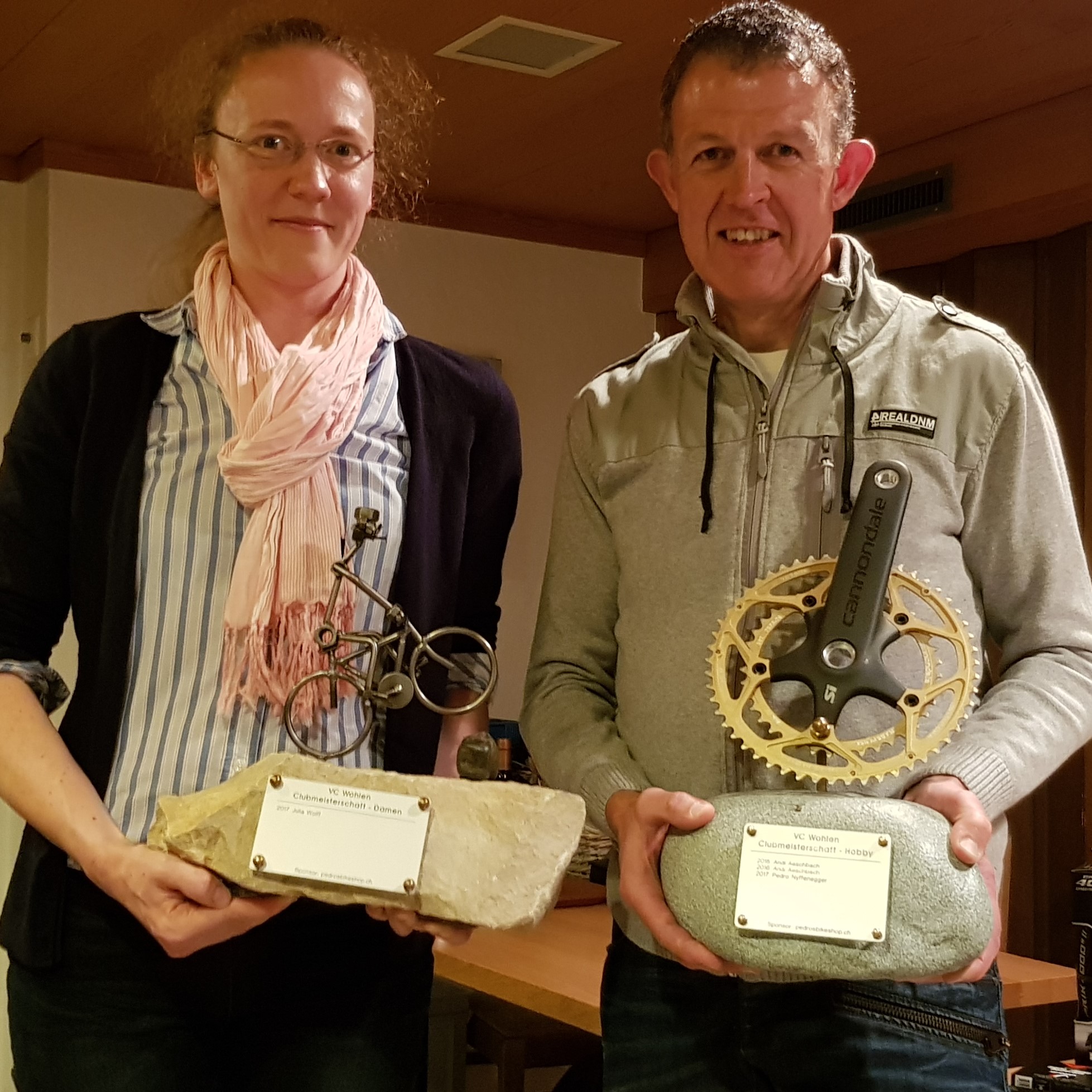 Julia mit 155 Punkten in der Gesamtwertung Damen und Pedro mit 153 Punkten bei den Herren posieren stolz für das Foto Clubmeisterschaft 2017. Herzliche Gratulation den beiden und allen weiteren TeilnehmerInnen.