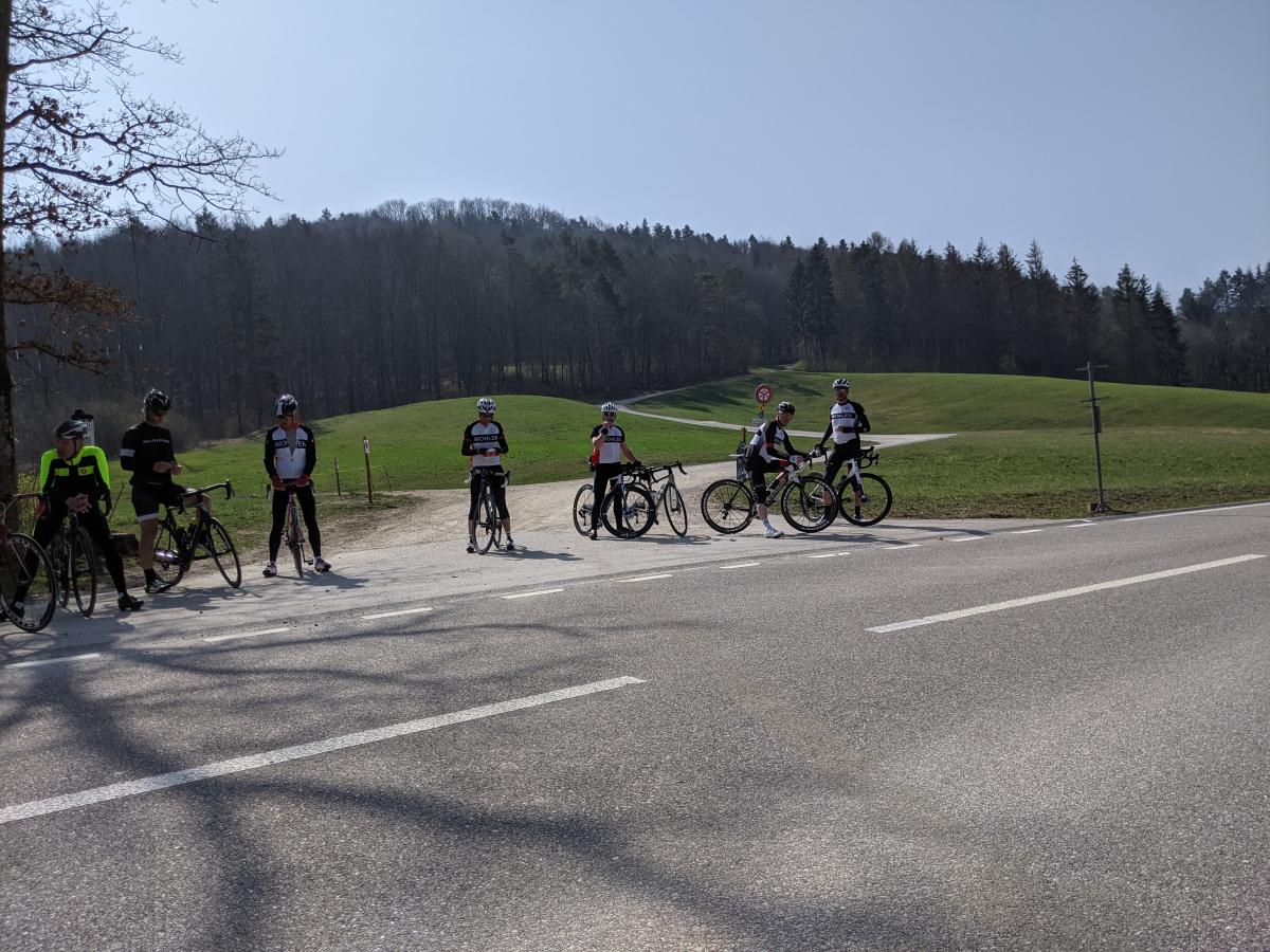 Das Wetter war uns sehr gut gesinnt, die Sonne strahlte und die bis zu 20° Grad begleiteten die 10 Teilnehmer auf den 105,5 Kilometer. Trotz fehlendem Kaffee und Kuchenhalt, hat jeder für seine Zwischenverpflegung in der Trikottasche ein Plätzchen gefunden und das Käsebrot, die Banane oder den Riegel genüsslich verzerrt.