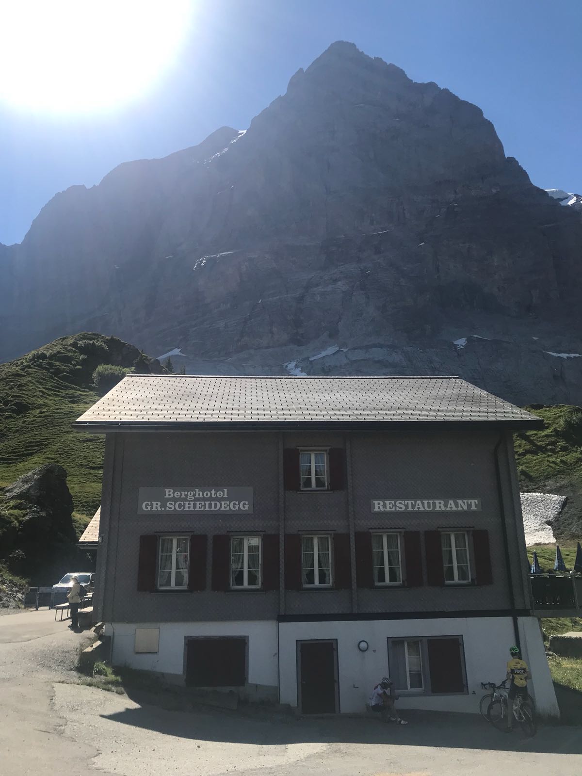Die Fahrt von der grossen Scheidegg bis nach Interlaken war gespickt mit einer „Stop and go“ Abfahrt. Halte wegen Postautos, Pausen zwecks abkühlen der Karbonfelgen oder umkehren infolge nicht mehr geteertem Veloweg. Wen interessiert’s…. wir hatten ja genug Zeit, da sich niemand wirklich dazu überreden liess, den Männlichen mit seiner bis zu 20% Steigung, noch zu „bezwingen“.