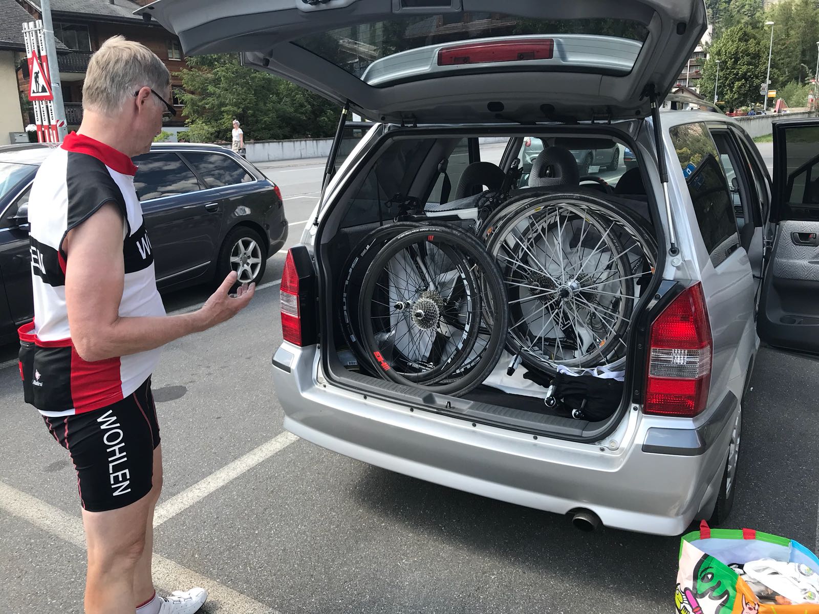 Und am Ende des Tages hat sich tatsächlich noch ein Hinterrad in meinen Kofferraum geschlichen und wollte noch eine Zusatzrunde drehen. Exgüsi, für die Zusatzkilometer ich hatte meine Brille nicht auf und einfach das erst Beste Rad geschnappt…
