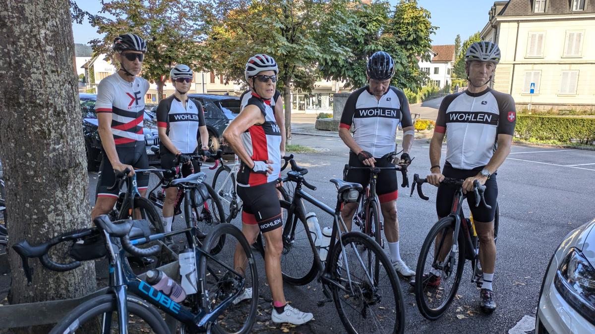 Mit 15 Teilnehmenden, darunter Gast Dany aus meiner anderen Cycling-Familie, starteten wir mit den üblichen plus/minus “VC-Verspätung” um 09:15 Uhr ab Kirchenplatz Wohlen. Die Fahrt durch die Stadt Baden war diesmal weniger stressig, als auch schon. Wir hatten wenige rote Phasen🚦und somit blieb die Gruppe kompakt.