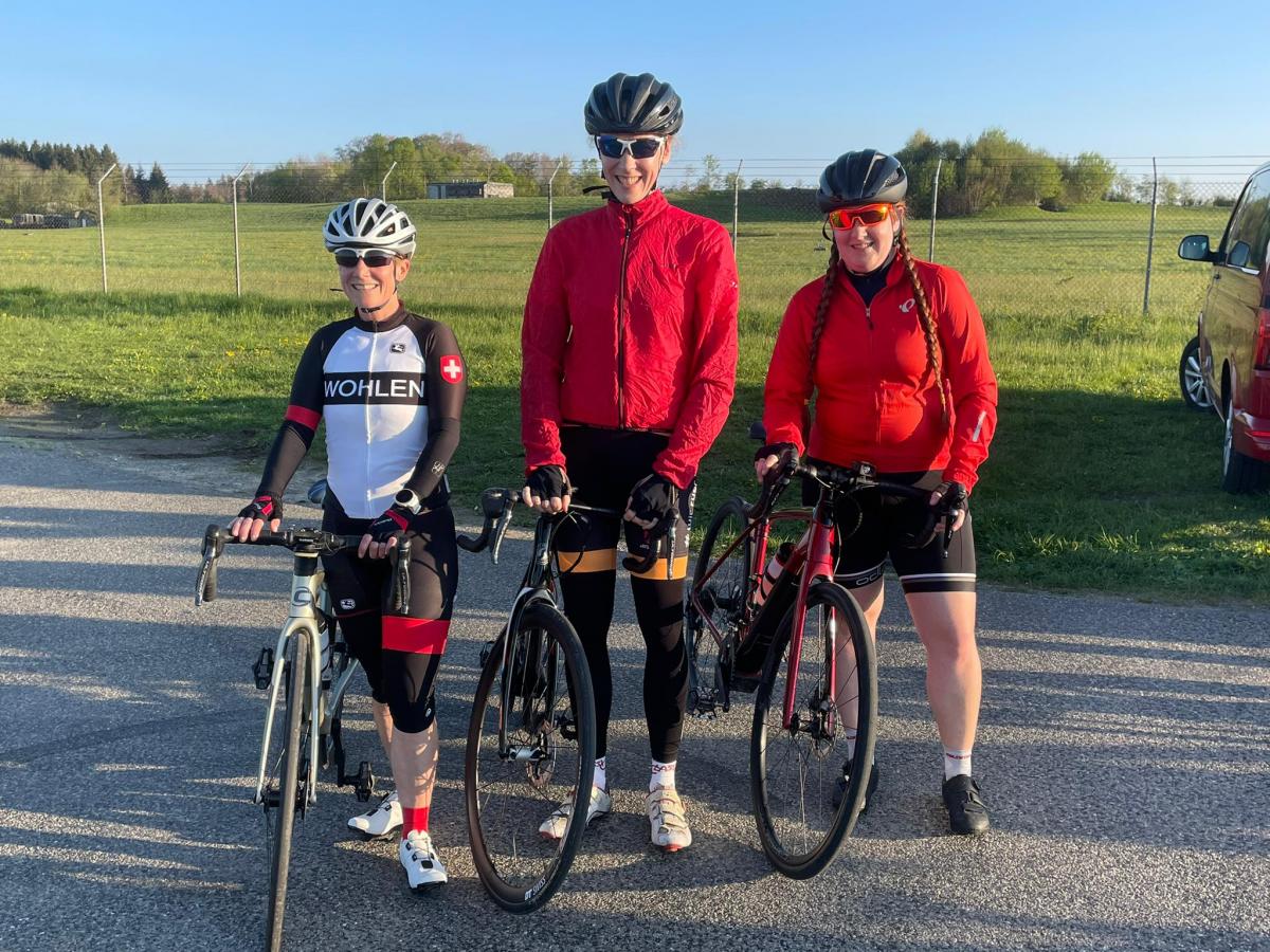 Geburtstagskind Karin begleitete uns, auf ihrem E-Renner, ein paar Kilometer, um hoffentlich noch rechtzeitig ihren Freund Dario als zweitplatzierter im Ziel in Empfang zu nehmen. Bis auf Reto, der als 3. ins Ziel fuhr, waren die zwei Spitzenplätze definitiv von den Jungen belegt.