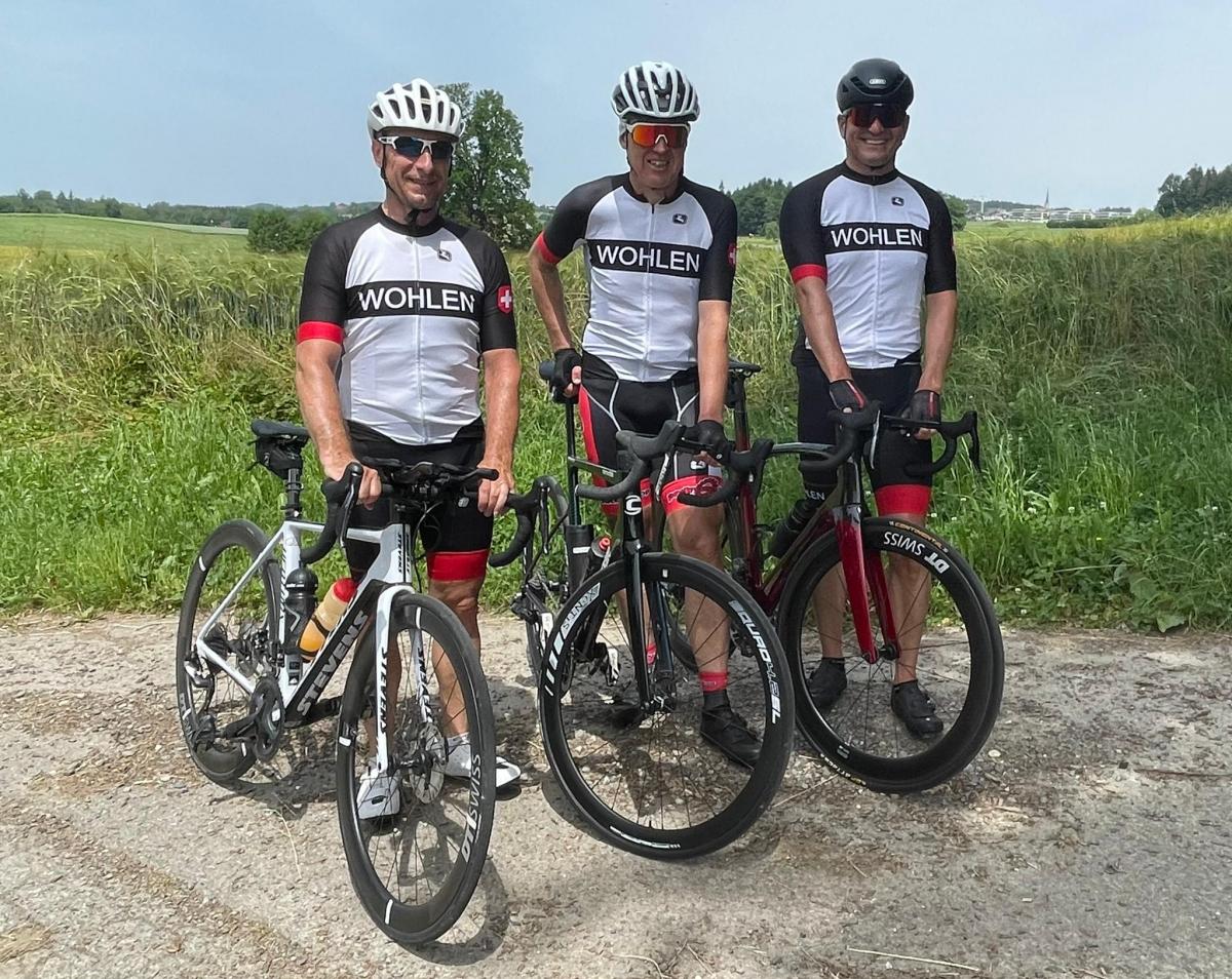 Zu dritt fuhren wir um 09:30 Uhr mit dem Rennrad von Wohlen auf dem direktesten Weg nach Rothenburg. Das Thermometer zeigte 21 Grad, jedoch die Luftfeuchtigkeit war mit 83% sehr drückend. Wir dachten schon, dass Marcel, Remo und ich die einzigen Teilnehmer sein sollten, doch in Ballwil stieg die Hoffnung auf weitere Konkurrenz. Beim Bahnübergang liess uns ein freundlicher Aargauer Automobilist den Kreisel passieren. Das kann nur ein Rennradler oder Veloliebhaber sein und tatsächlich der Fahrer war Pascal. Ca. 20 Minuten später trafen wir dann Sabrina und Pascal in Rothenburg.