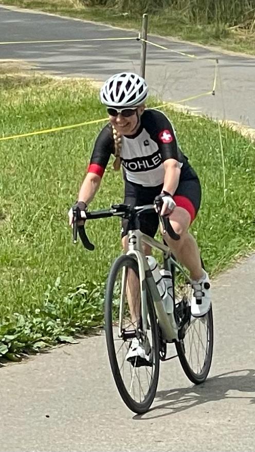 Die Männer traten kräftig in die Pedalen und Sabrina konnte gleich anhängen. Mir gelang dies nicht, da für mich das Tempo schlichtweg zu hoch war und wir wissen, wenn du dich nicht ans Hinterrad deiner Konkurrenz haftest, dann hast du alleine im Wind keine Chance. Der kurze knackige Aufstieg, jeweils ein paar Meter vor der jeweiligen Rundeneinfahrt, hatte es in sich. Leider verlor ich schnell den Überblick und wusste nie wer wo gerade wem am Hinterrad klebte.