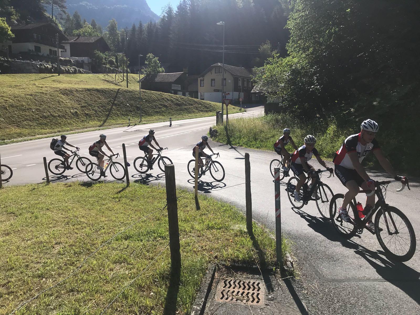 Bevor wir in Meiringen definitiv losfuhren gab es noch ein kurzes Briefing von Roger. Er wies uns darauf hin, dass die Strassen eher schmal sind und das „grosse gelbe Auto“ auf jeden Fall Vortritt hat und ganz viel Platz benötigt. Was so viel bedeutet, wenn es von Weitem "düüüü dääää doooo" tönt, soll man sich darauf gefasst machen, den Weg frei zu geben und am besten vom Rad zu steigen, egal wie steil gerade die Strasse ist.
