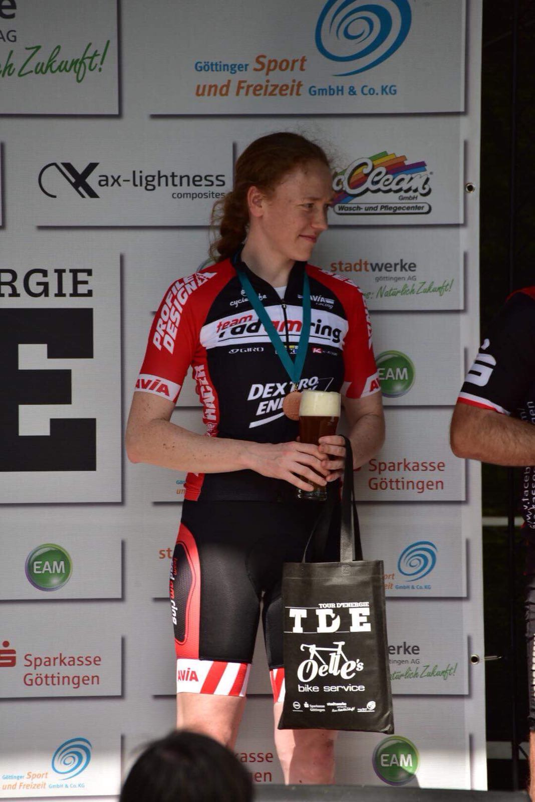 Unsere Julia war am Sonntag, 22. April 2018 in Göttingen an der Tour d'Energie und belegte von 120 Teilnehmerinnen den 9. Rang. In ihrer Altersklasse hat sie es auf den ausgezeichneten 3. Platz geschafft. Die 100 km und ca. 1'000 Höhenmeter mit einer Durchschnittsgeschwindigkeit von 36.06 km/h absolvierte sie in einer super Zeit von 2:46:20,6.